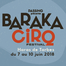 LA PROGRAMMATION DU FESTIVAL BARAKACIRQ 2018 EN IMAGE  DEUXIÈME ÉDITION DU FESTIVAL BARAKACIRQ À L’ÉCOLE DE CIRQUE DE TARBES DU 7 AU 10 JUIN 2018. Programmation : ► Jeudi 7 juin : 18H : Pass rue de Tarb’en Canta ; 18H/19H : Apéro dinatoire concert ; 19H30...